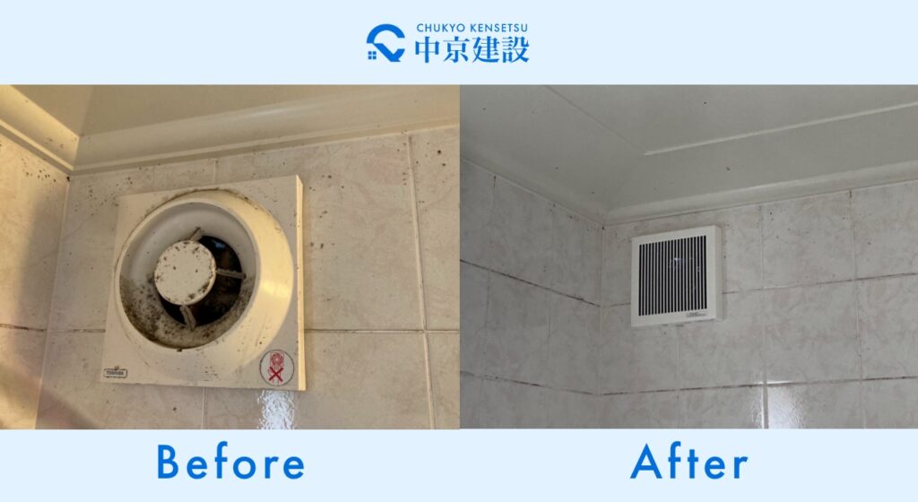 古くなった換気扇を新しい設備に交換し、換気効率と静音性が向上しました。