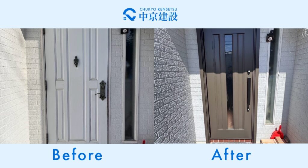 玄関カバー工法によるドア交換を実施し、外観デザインと機能性を改善しました。