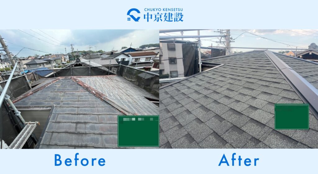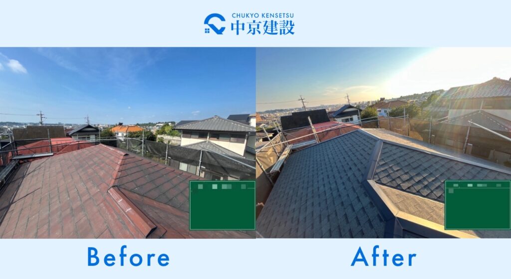 長年の風雨で色あせていた屋根が、新しい屋根材で美しく生まれ変わりました。